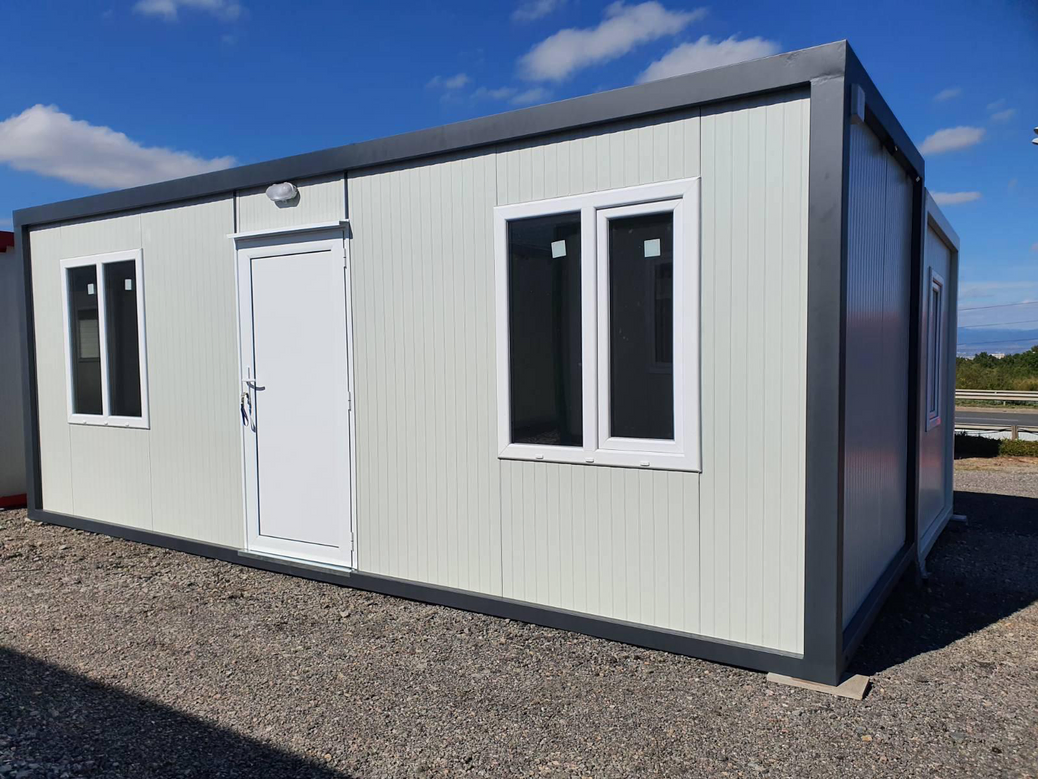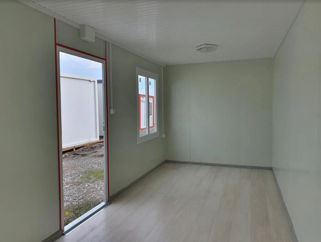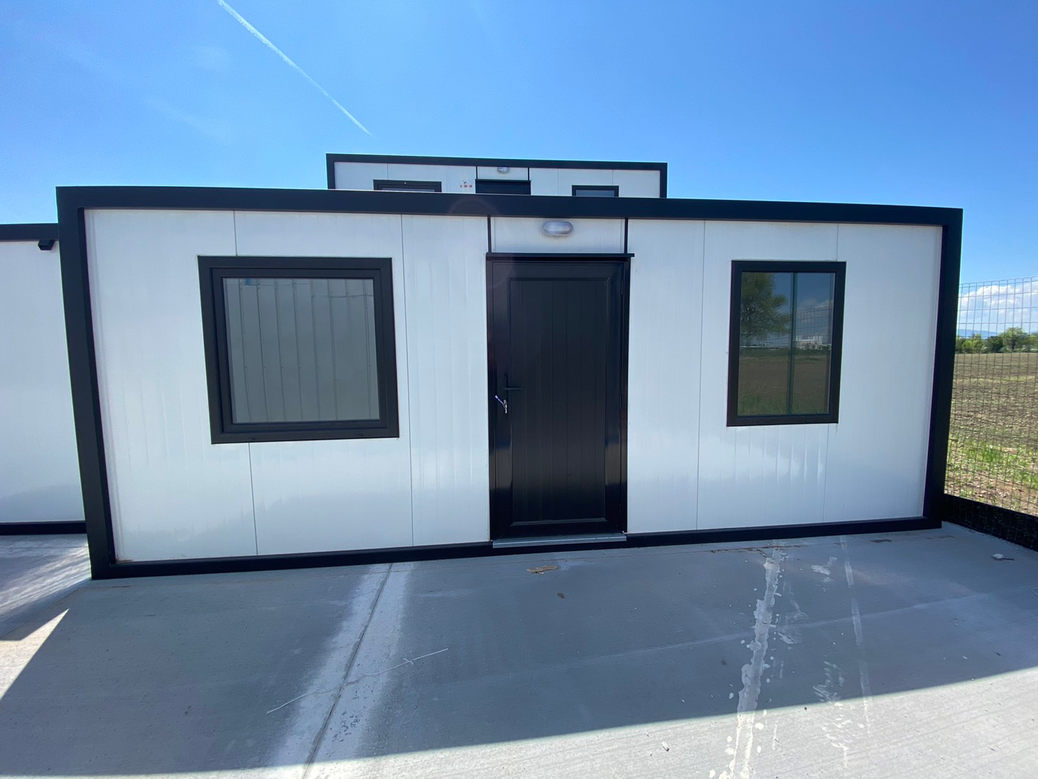 Der Container basiert auf einer stabilen Stahlrahmenkonstruktion mit korrosionsbeständiger Beschichtung. Die Wand- und Dachelemente bestehen aus isolierten Sandwichpaneelen mit hoher Wärmedämmung – ideal für ganzjährige Nutzung.