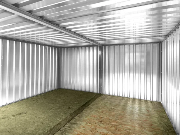 Wenn Sie in einem ungünstig gelegenen Raum eine große, offene Fläche zur Lagerung von Waren benötigen, sind die 3 m langen, nebeneinander verbundenen Flatpack-Container mit einer Innenbreite von 4065 mm (2 Einheiten) eine äußerst nützliche und erweiterbare Lagerlösung.