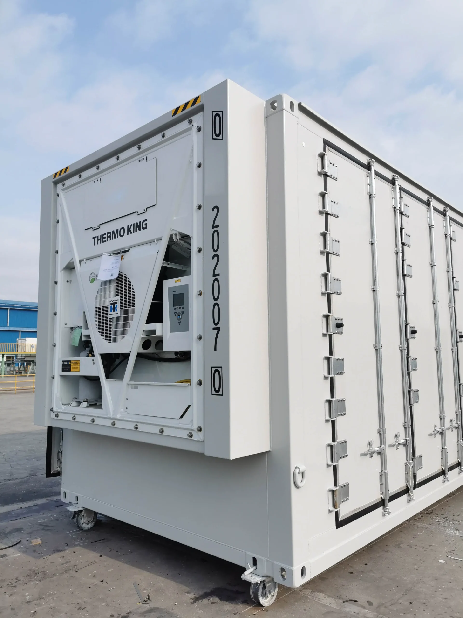 Sein seitlich integriertes Mehrtürensystem kombiniert mit einem hochpräzisen Thermo King Magnum Plus Kühlaggregat ermöglicht ein Höchstmaß an Effizienz in der Frischelogistik – von Fischverarbeitung bis Pharmaumschlag. 32 Fuß Kühlcontainer mit Seitenzugang