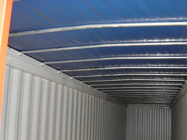Open Top-Container besitzen kein herkömmliches Wellblechdach. Stattdessen verfügen sie über abnehmbare Spriegel und eine wetterfeste Plane, die mit Seilen befestigt wird. Dies vereinfacht das Be- und Entladen, das üblicherweise per Kran von oben erfolgt, erheblich. Der Türsturz (über der Tür) kann ebenfalls umgeklappt oder abgenommen werden, um den Zugang zur Ladung zu erleichtern.