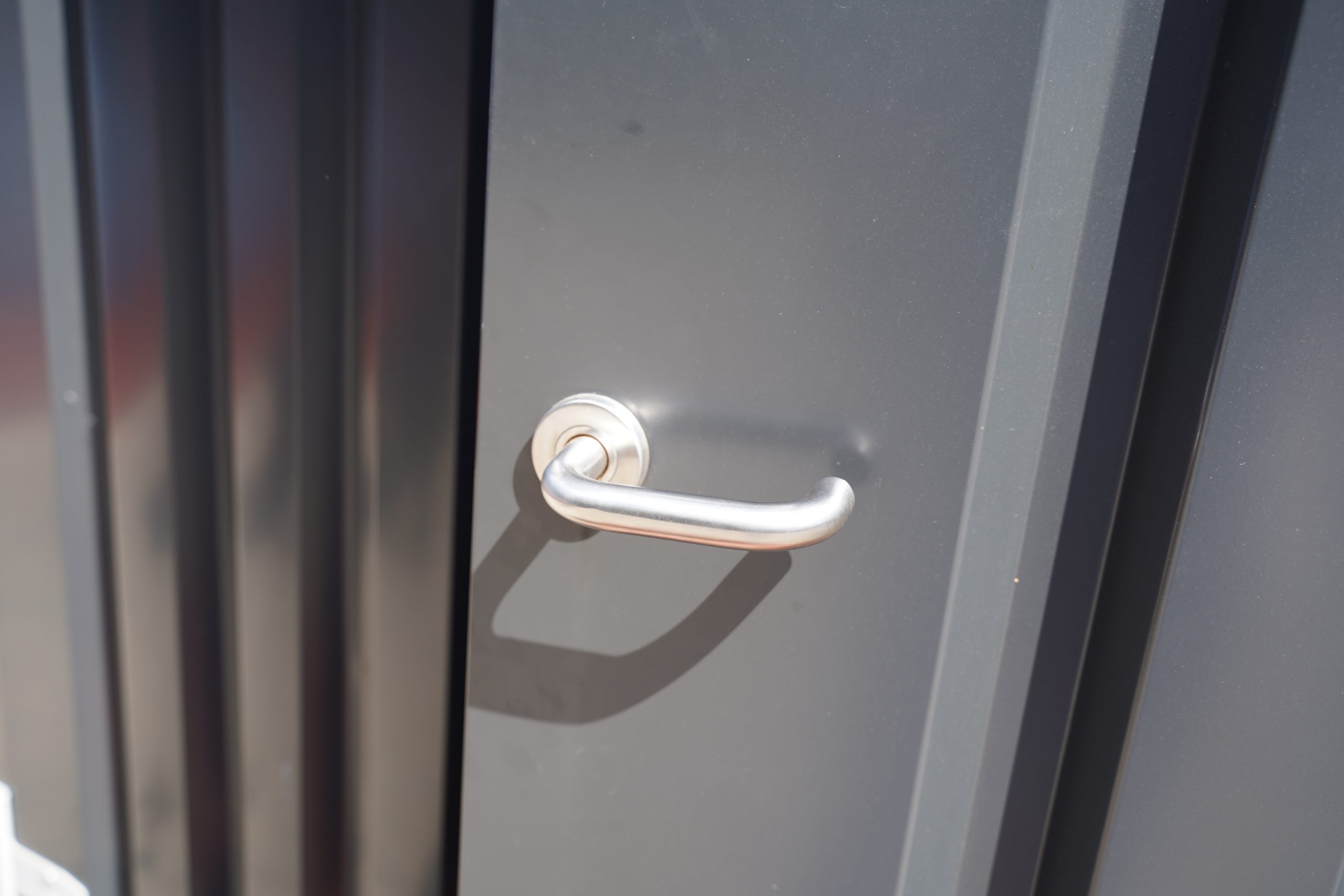 Für Sicherheit und Komfort sorgen das abschließbare Vordach sowie die Doppeltür an der Stirnseite, die jeweils mit eigenen Schlüsseln ausgestattet sind. So können Sie Ihr Equipment jederzeit sicher verwahren. Die breite Türöffnung ermöglicht zudem den bequemen Transport größerer Gegenstände – etwa Getränkefässer, Möbel oder Kühlgeräte – und macht den Container ideal für den professionellen Einsatz im Gastronomie- oder Eventbereich.
