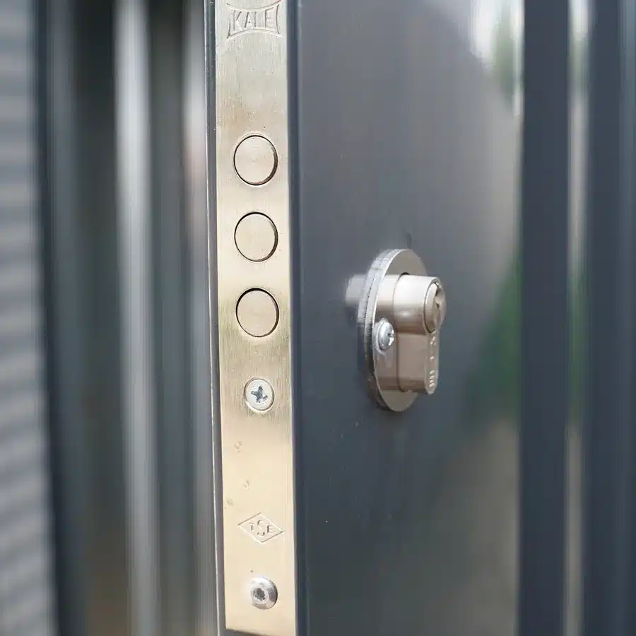 Die Verkaufsklappe des Containers ist beidseitig mit je einem Zylinderschloss gesichert.