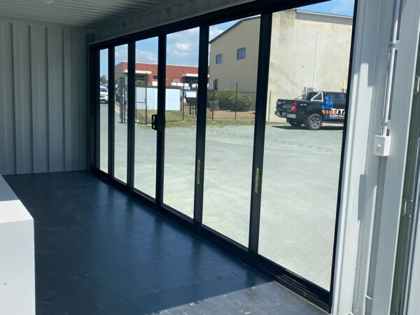 Umgebautes 20 Fuß Containerbüro mit Glastür und Klimaanlage